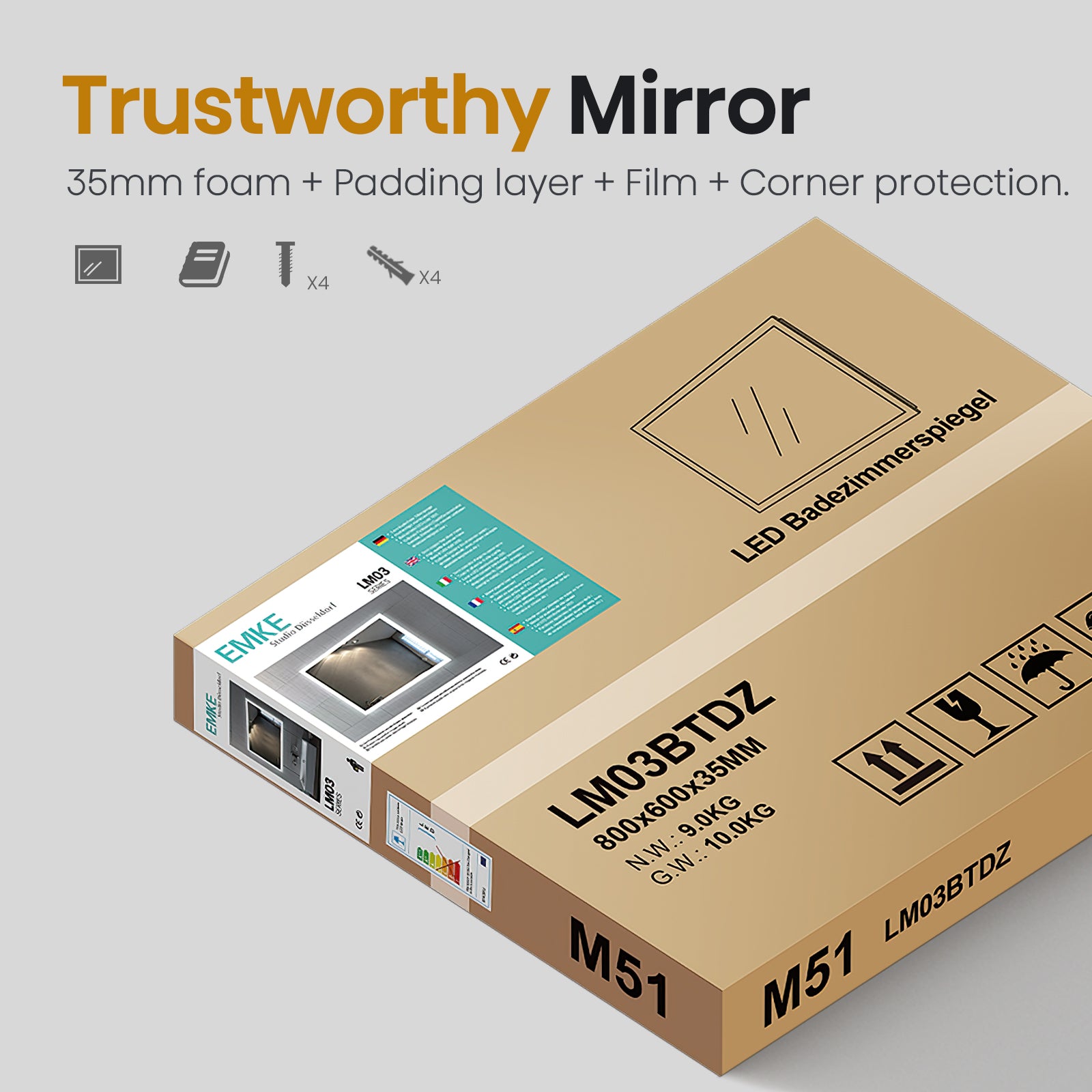 Great looking mirror, but having issues with the light and heater buttons, sometimes they deem to work when touched, will be going back.