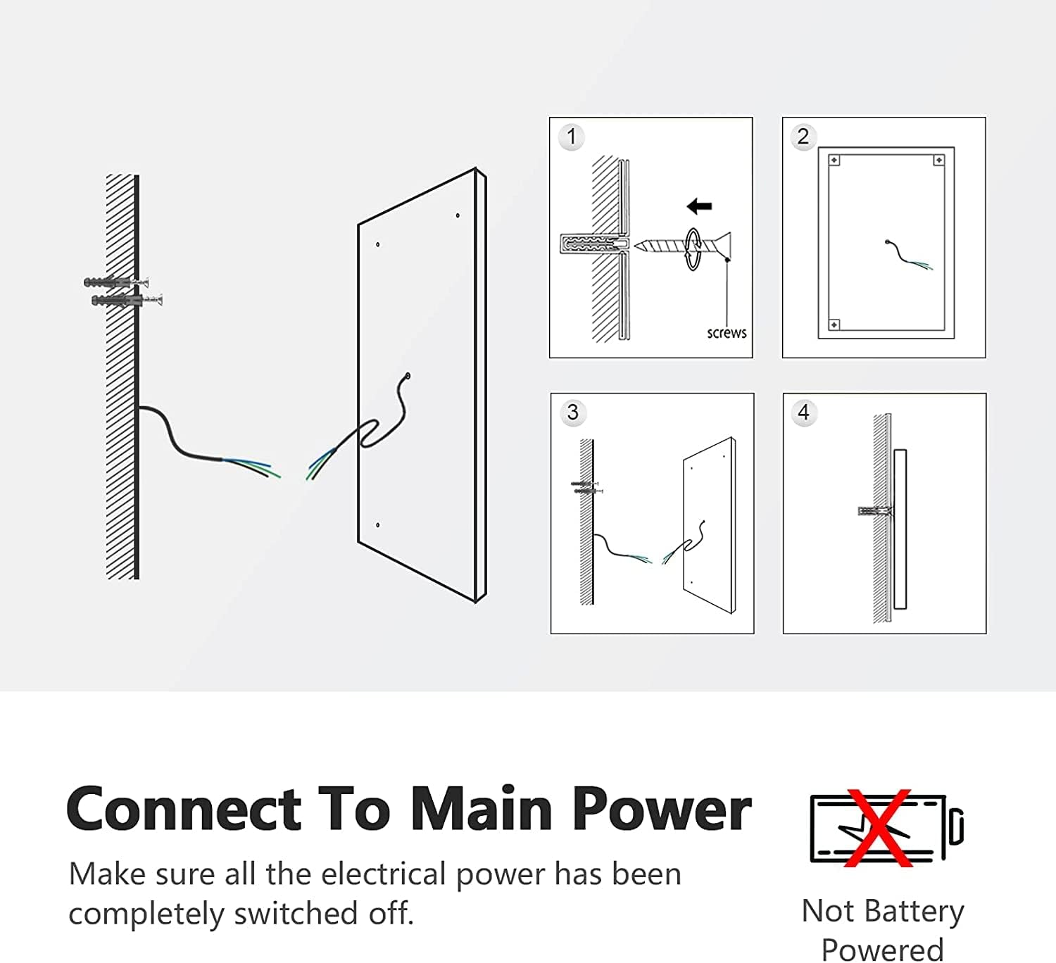 • Practical: The dimmable square LED mirror can provide you with different brightness levels to meet the different needs of your daily life. You can adjust the brightness of the light with the touch button of the switch. The LM26's memory function can also save the last setting when it is turned off, reducing the number of dimming and anti-fog settings.